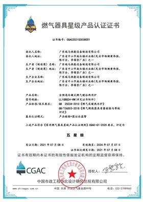 燃?xì)馄骶咝羌?jí)產(chǎn)品認(rèn)證證書